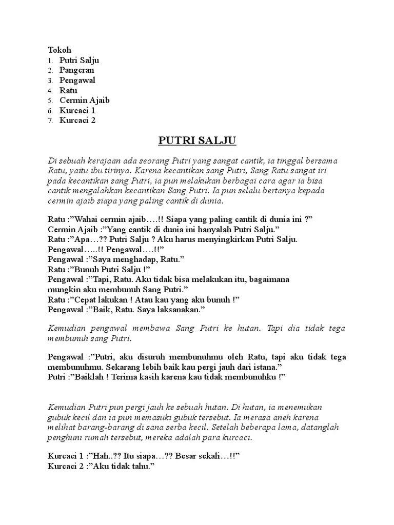 Naskah drama singkat putri salju. Check spelling or type a new query. We did not find results for: Maybe you would like to learn more about one of these?