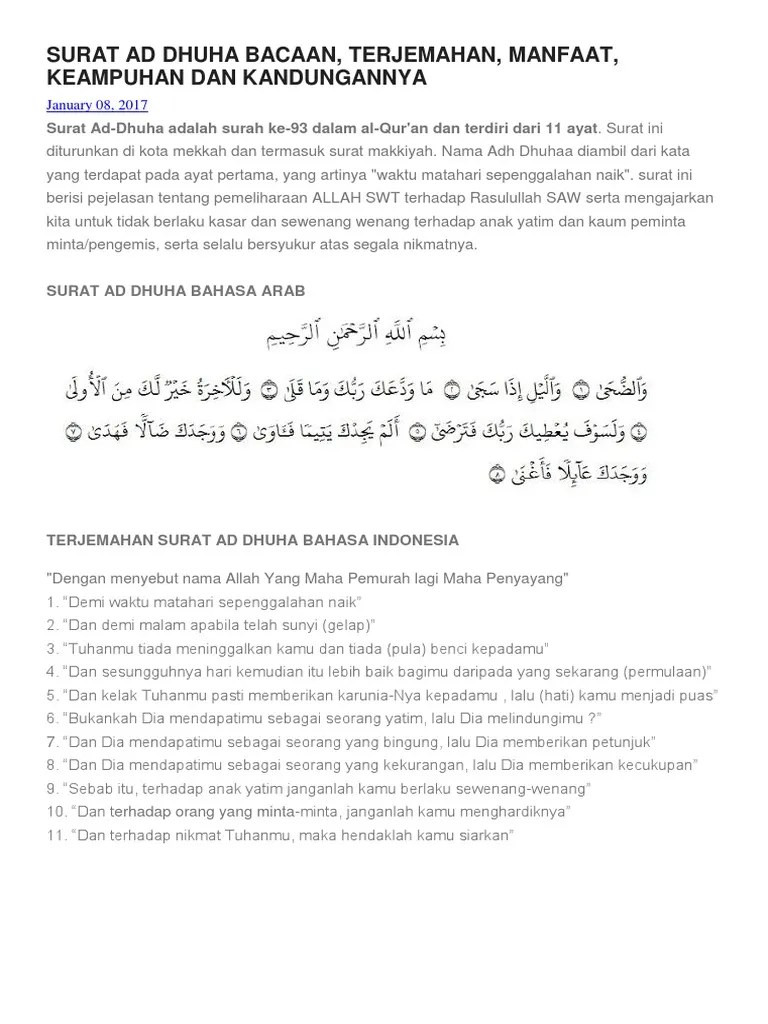 Surat Ad Dhuha Terjemahan - Surat Ad Dhuha Ayat 1 11 Arab Latin Terjemahan Lengkap Dengan Isi Kandungannya Dream Co Id : Dan demi malam apabila telah sunyi.